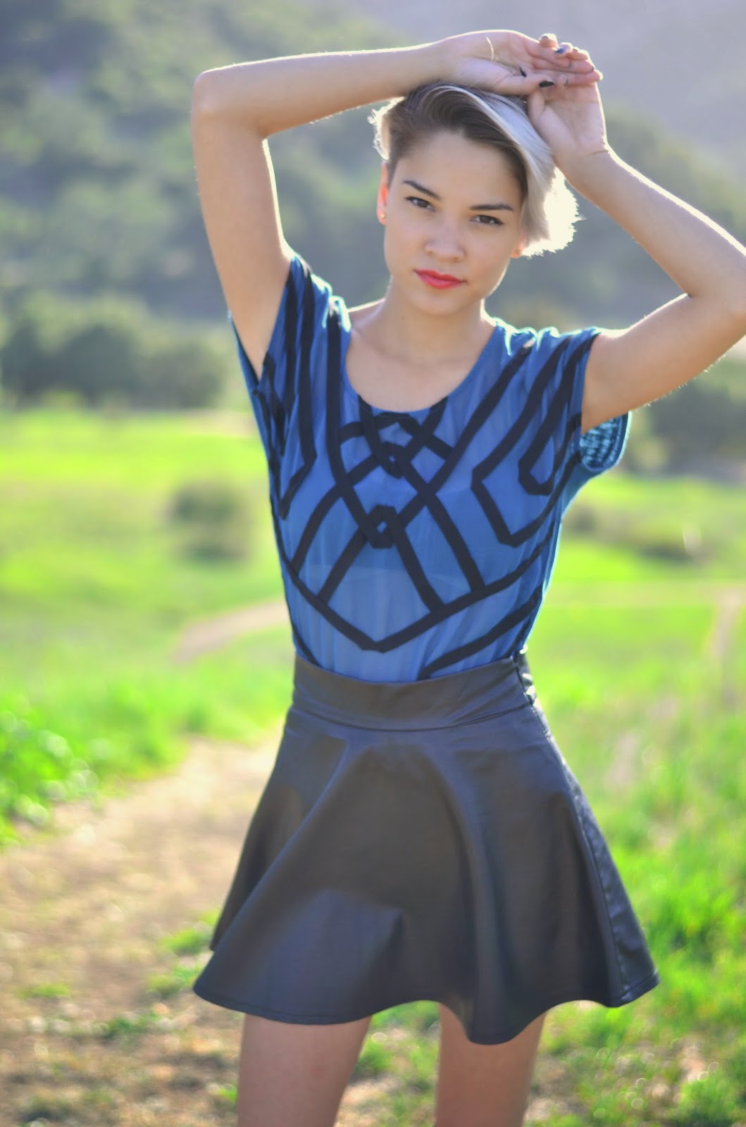 Amy and I had a ton of fun shooting this look! I felt out of place wearing this outfit in nature, then we stumbled across this really cool old water tower that was covered with graffiti! We got a little creative this time around.