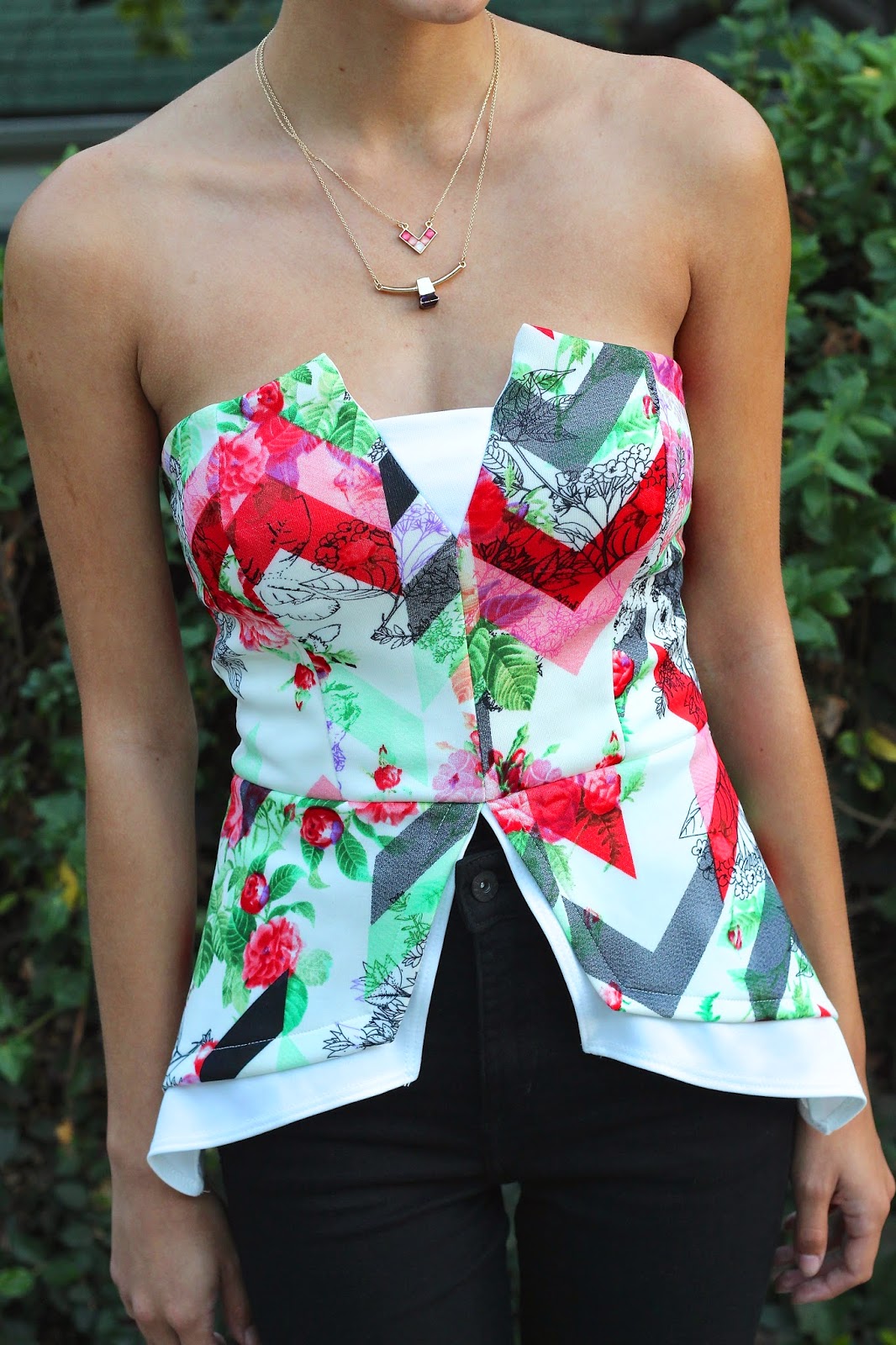 So let's talk about this bustier top from Shop Charade! I expected it to be super stiff and full of boning or support materials, but it's all knit! It's much more comfortable than I expected, plus it had padded cups, so ladies, you know what I'm saying... (I'm saying bras are the worst). As much as I love the look of this top, I had the hardest time deciding what to style it with! I wanted a necklace to fill the space, but not distract form the shirt, so layering simple pieces helped me reach my desired look. Plus, I felt the white shoes created a balance. I tried black shoes but the bottom half of me seemed to dark and heavy.